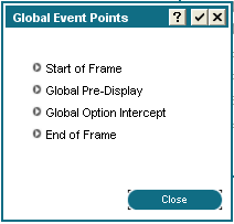 end of frame accesses the ILF editor for the End of Frame event point. Upon completion, you are returned to the Global Event Points overlay.