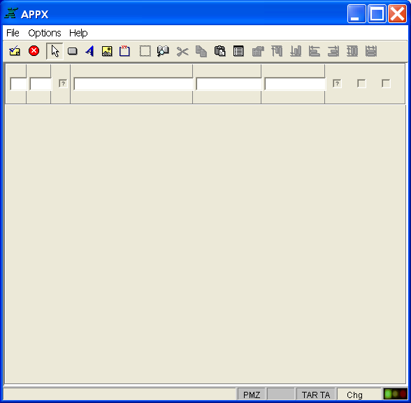 After you complete specifications for an image on the Scrolling Input Images screen, you automatically enter the Image Editor when you press return or select the image editor option. The Image Editor, APPX's screen painting facility, is the facility used to format menus, inputs, outputs, and inquiry screens. As you design the input screen, you are seeing the image exactly as it will appear to your users. Figure 3-6-17 below shows a scrolling input image being edited in the Image Editor.