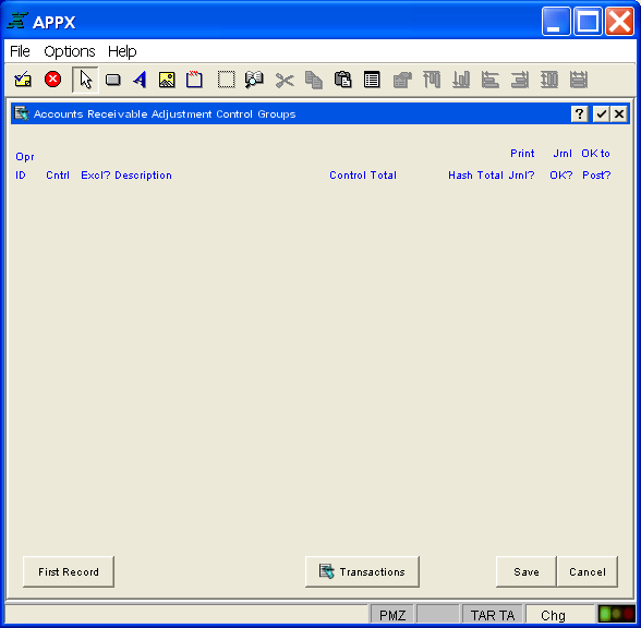 Note that there is normally no need to identify the data fields in a scrolling image. Column headings are usually defined for the data fields in an image in an earlier display-only frame, such as that shown in Figure 3-6-18 below. This particular image also includes buttons for the optional children attached to the scrolling image.