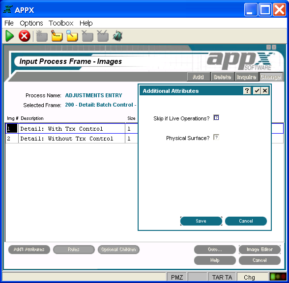 When you select the additional attributes option on the Scrolling Input Images screen, the scrolling input Additional Attributes overlay is displayed as shown in Figure 3-6-13 below, where you can access additional parameters.